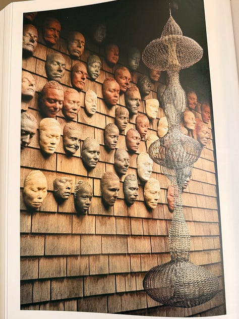 THE DOORS TO ASAWA'S HOME ASAWA’S MASKS: The masks Asawa made from casts of the faces of her friends, family and neighbors (from what I’ve read, these groups were one and the same). The masks hung on her house and documented the comings and goings of her community.