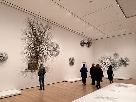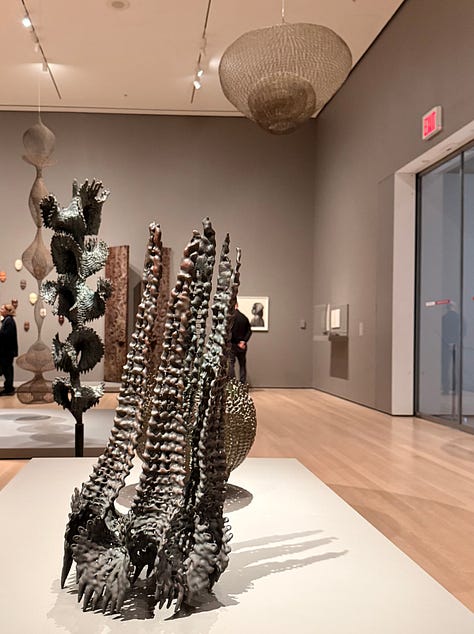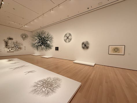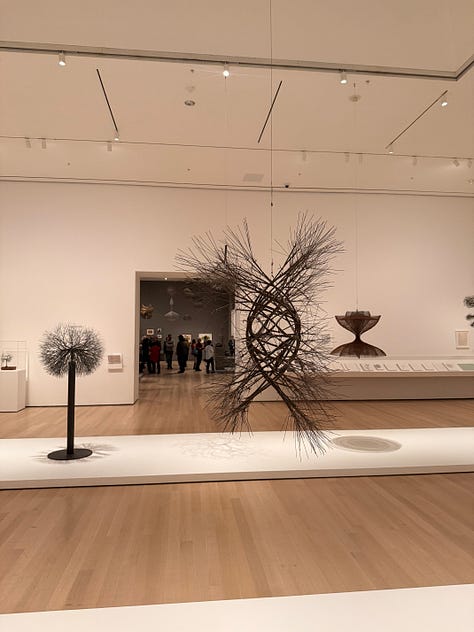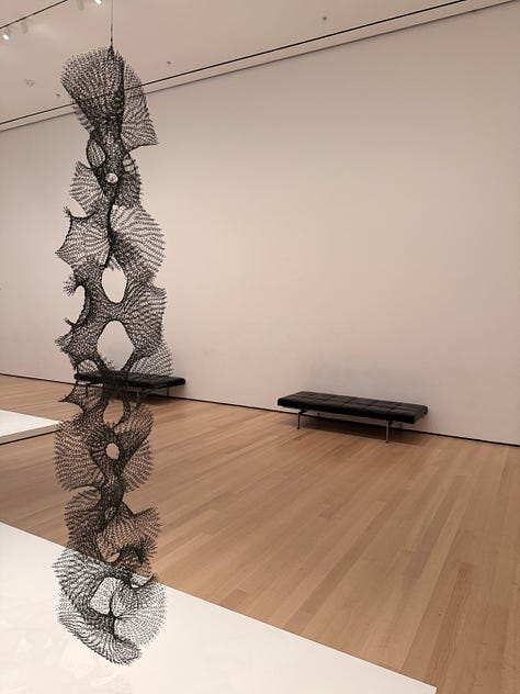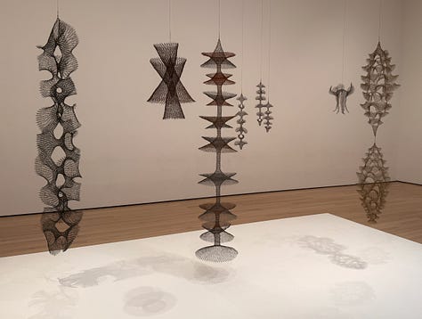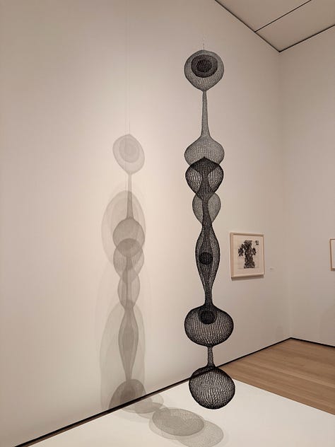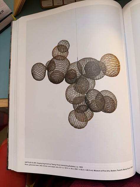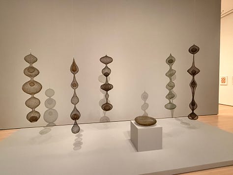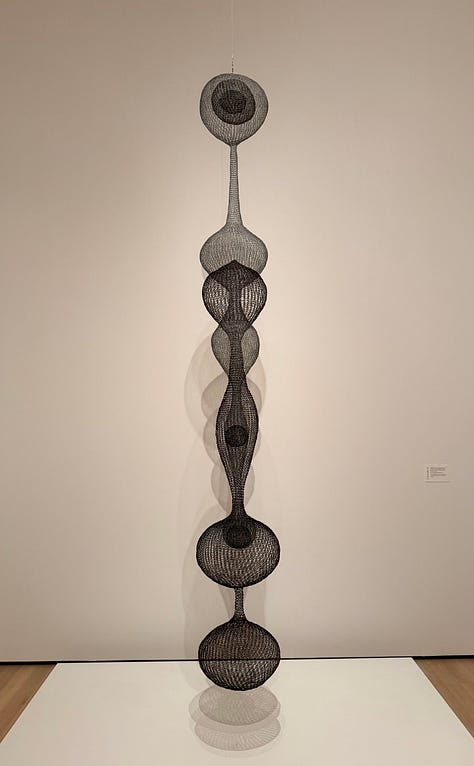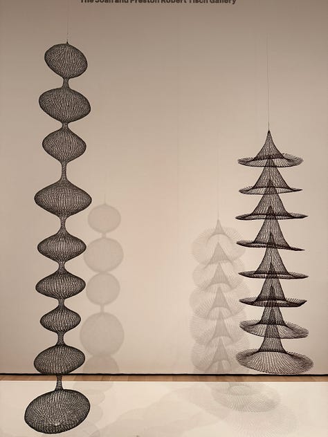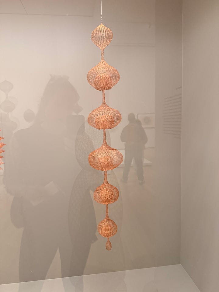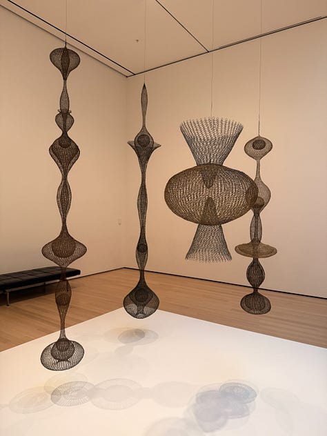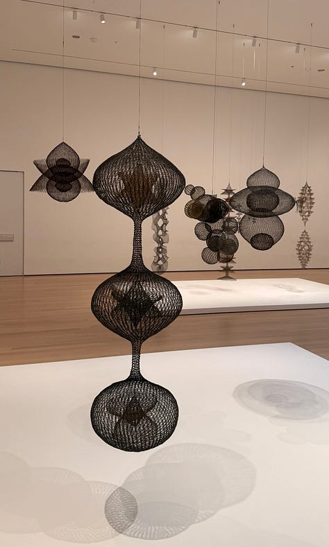 Before seeing Asawa’s work, I didn’t realized how solidly and stubbornly the idea of the lonely, starving, suffering artist had taken root in my brain and heart. Walking through, I found myself thinking: