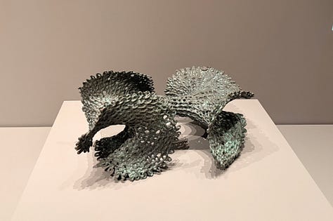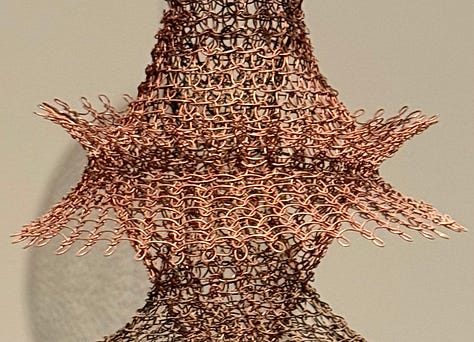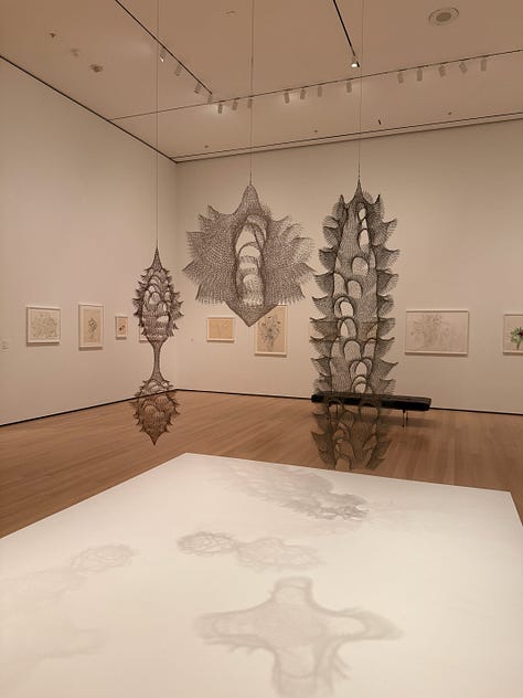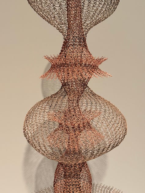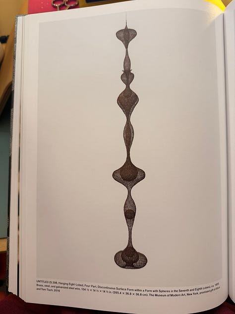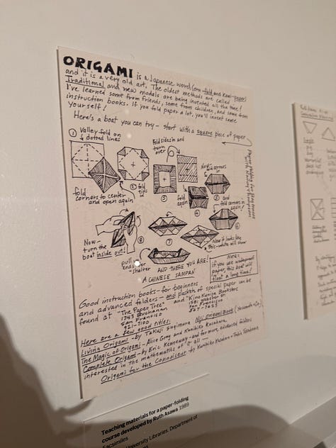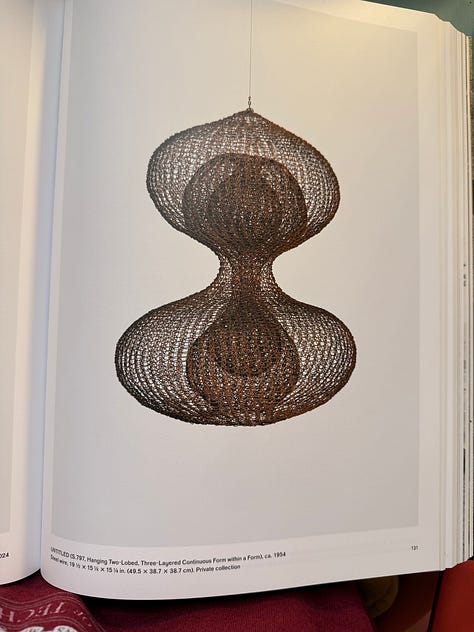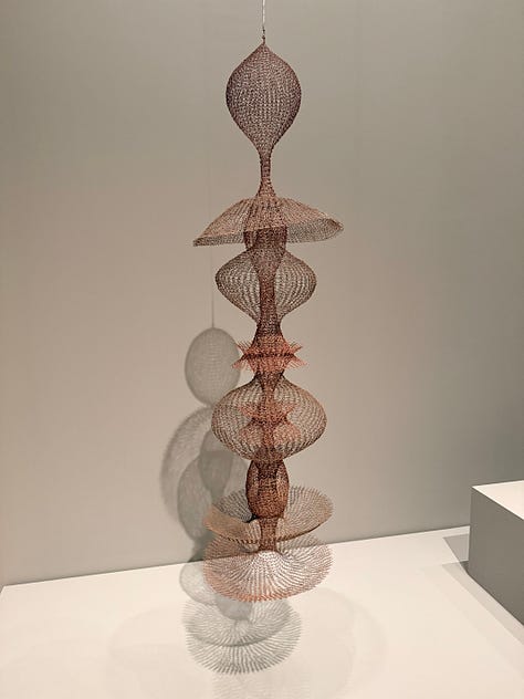I didn’t know anything about Ruth Asawa, except that my friend Gabi told me I should see her work. My husband and I walked through the galleries and our mouths opened wider and wider as we saw Asawa’s lifetime of work. We’d turn a corner and there’d be MORE?! And they were even MORE wild than the works before?!