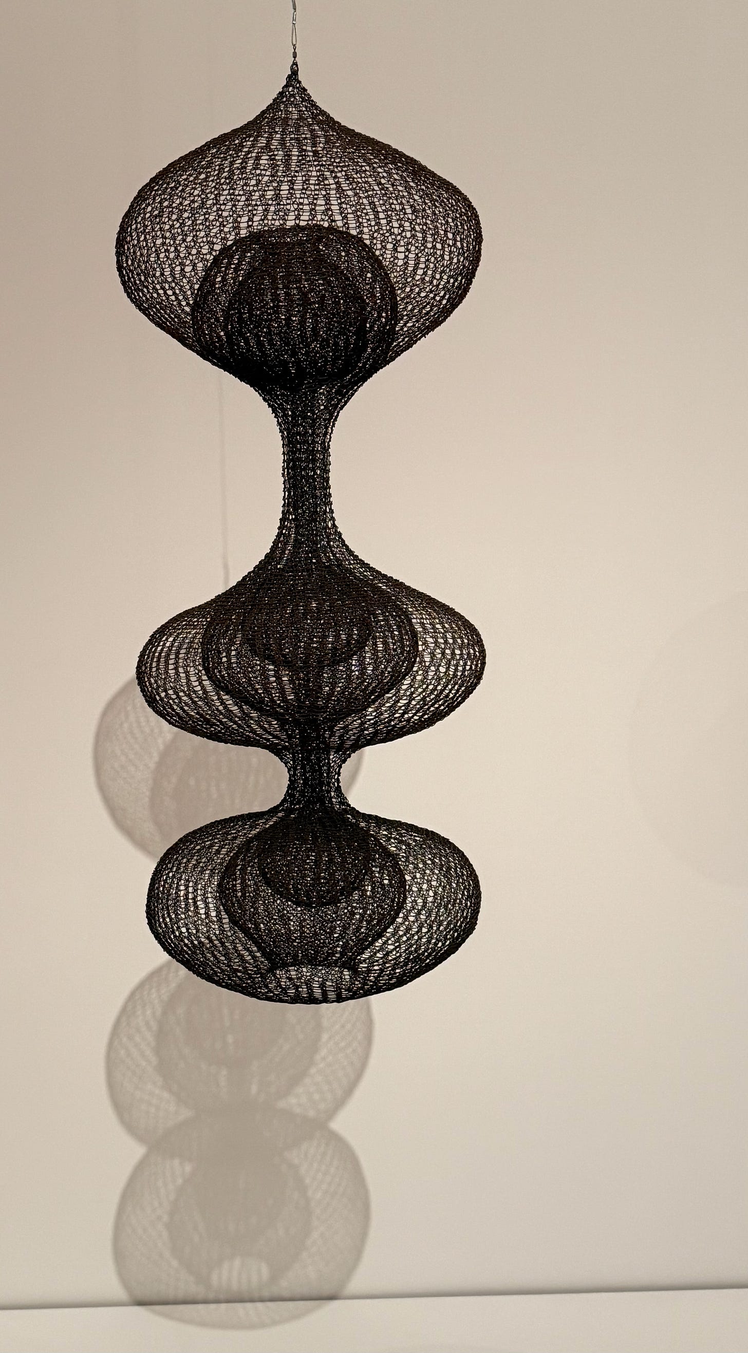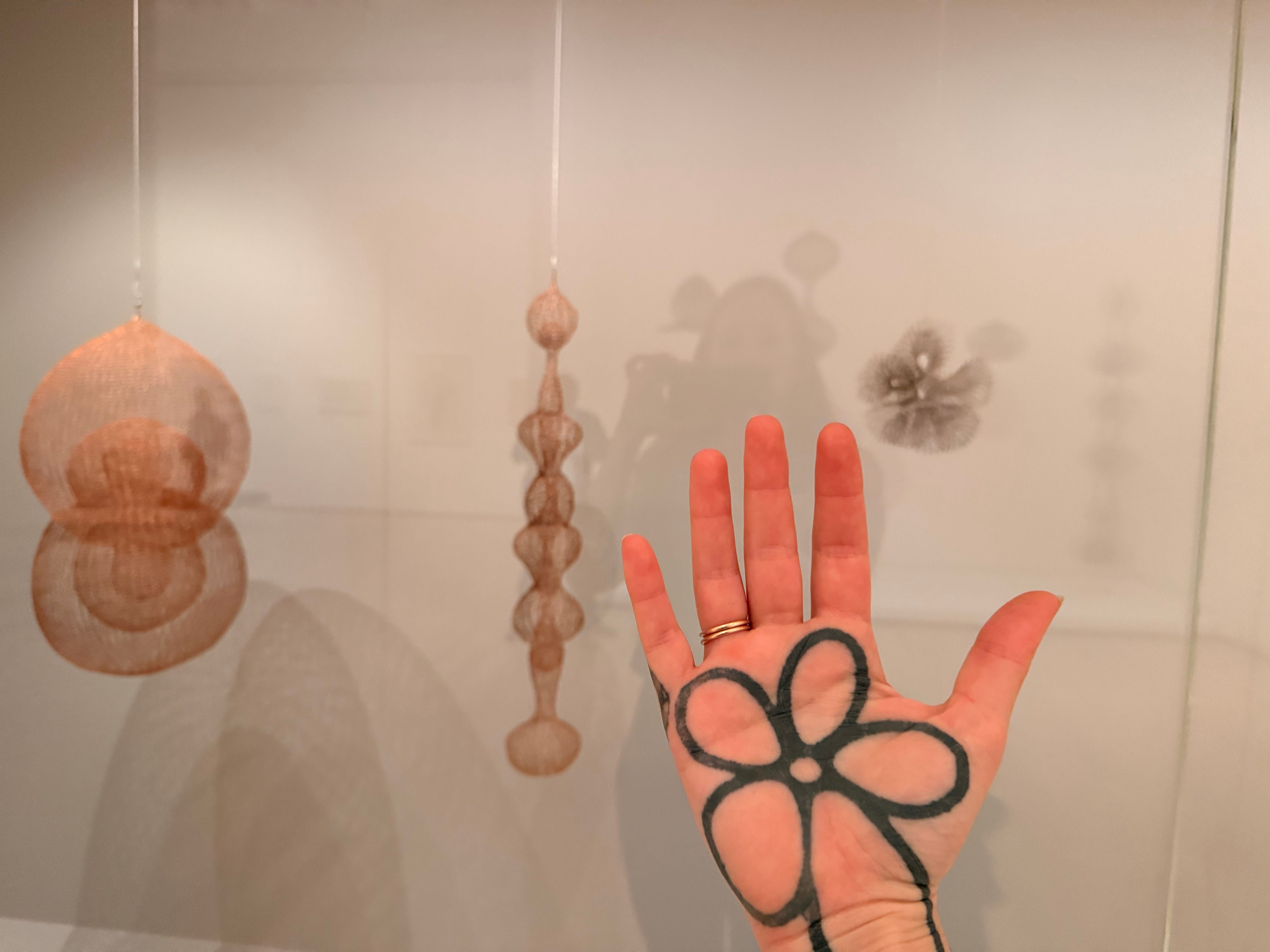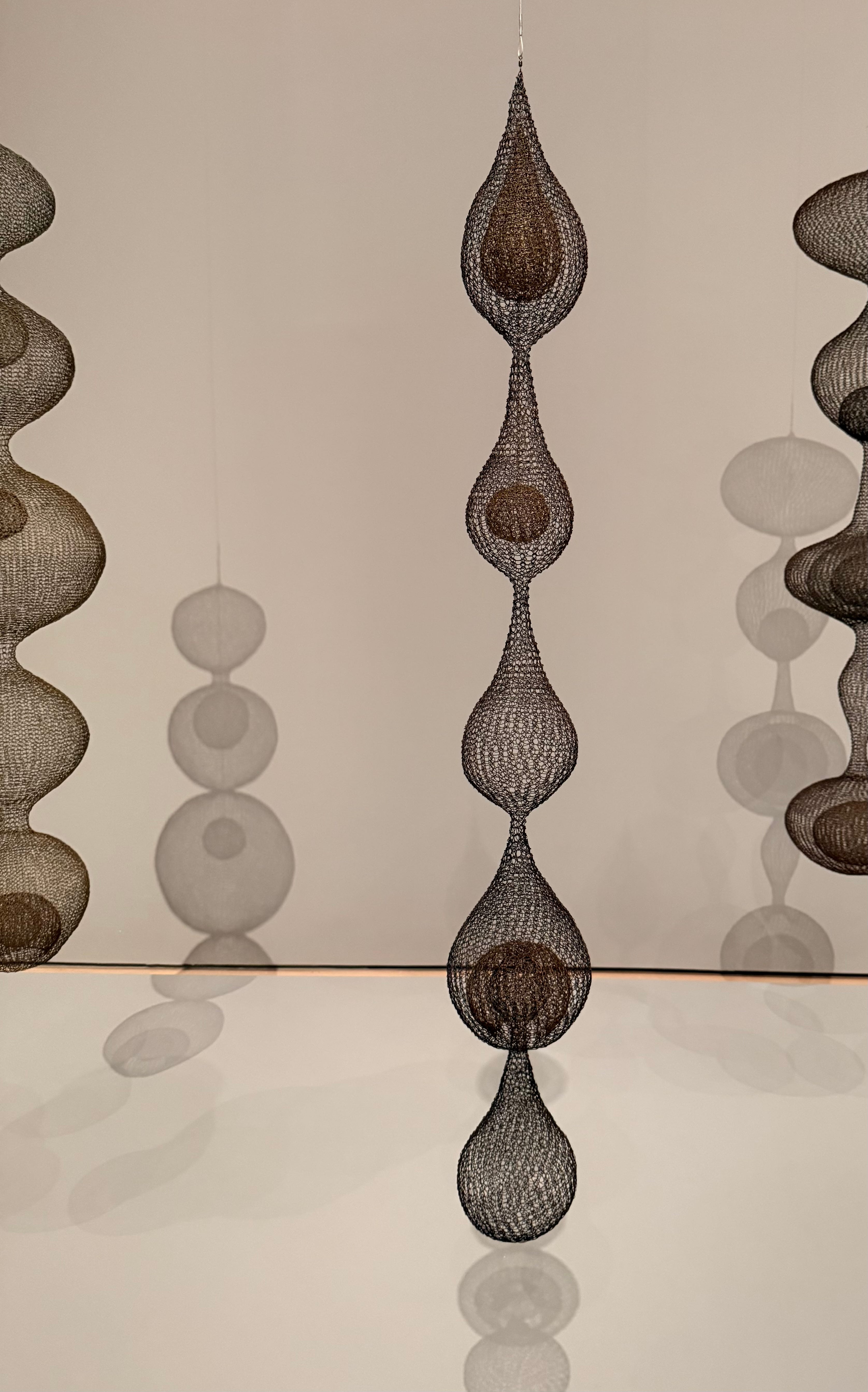ASAWA’S WIRE: (revealing a fun fact) Wire forms in miniature. (According to Janet Bishop’s piece in the Exhibition Catalogue, A Seat at the Table: At Home with Ruth Asawa, these miniatures were born out of an assignment Asawa’s son received in high school: to build a shoebox model of a room in their house. This became a family project. Since some of Asawa’s wire forms were hanging in the house, she made miniature versions of the sculptures. Naturally.)