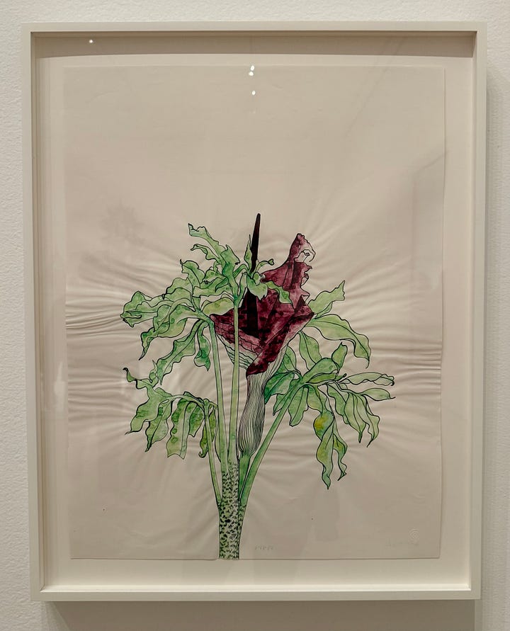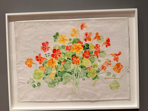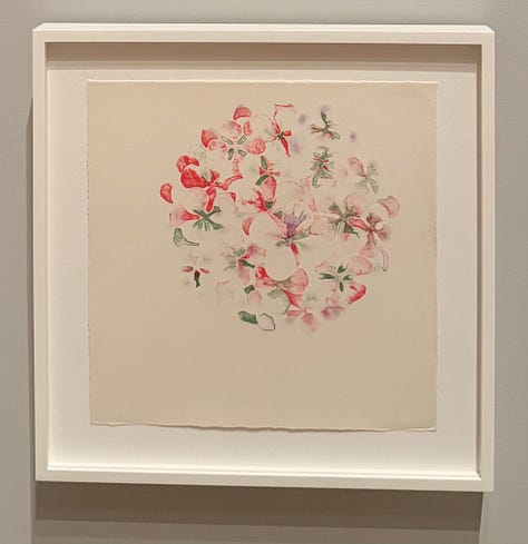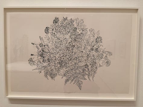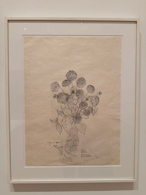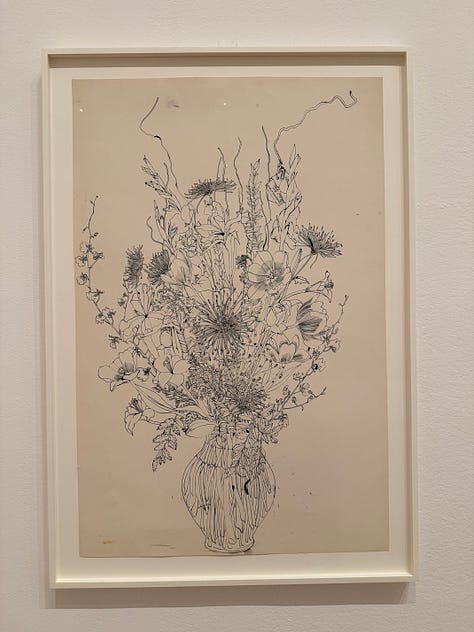 Within Asawa’s 2D work are ASAWA’S DRAWINGS OF BOUQUETS. I’m breaking these out on their own because their stories make me lose my mind in the best way. They’re delicate line drawings of bouquets gifted to her over the years by friends, her children, her husband (who grew beautiful flowers in their yard). The bouquet-gifter often received a drawing of their bouquet as a gift.