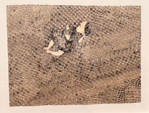 ASAWA’S 2D WORK: (professorial) The moisture changes the paper or the fabric. The work is always playing with dimensions and physicality. 2D is actually 3D.