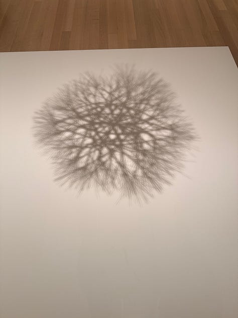 As these parts of my brain hummed and clanked in the background, the looped wire works hit me the hardest. I kept trying to find her starting point, to figure out just how “much” made up these pieces: