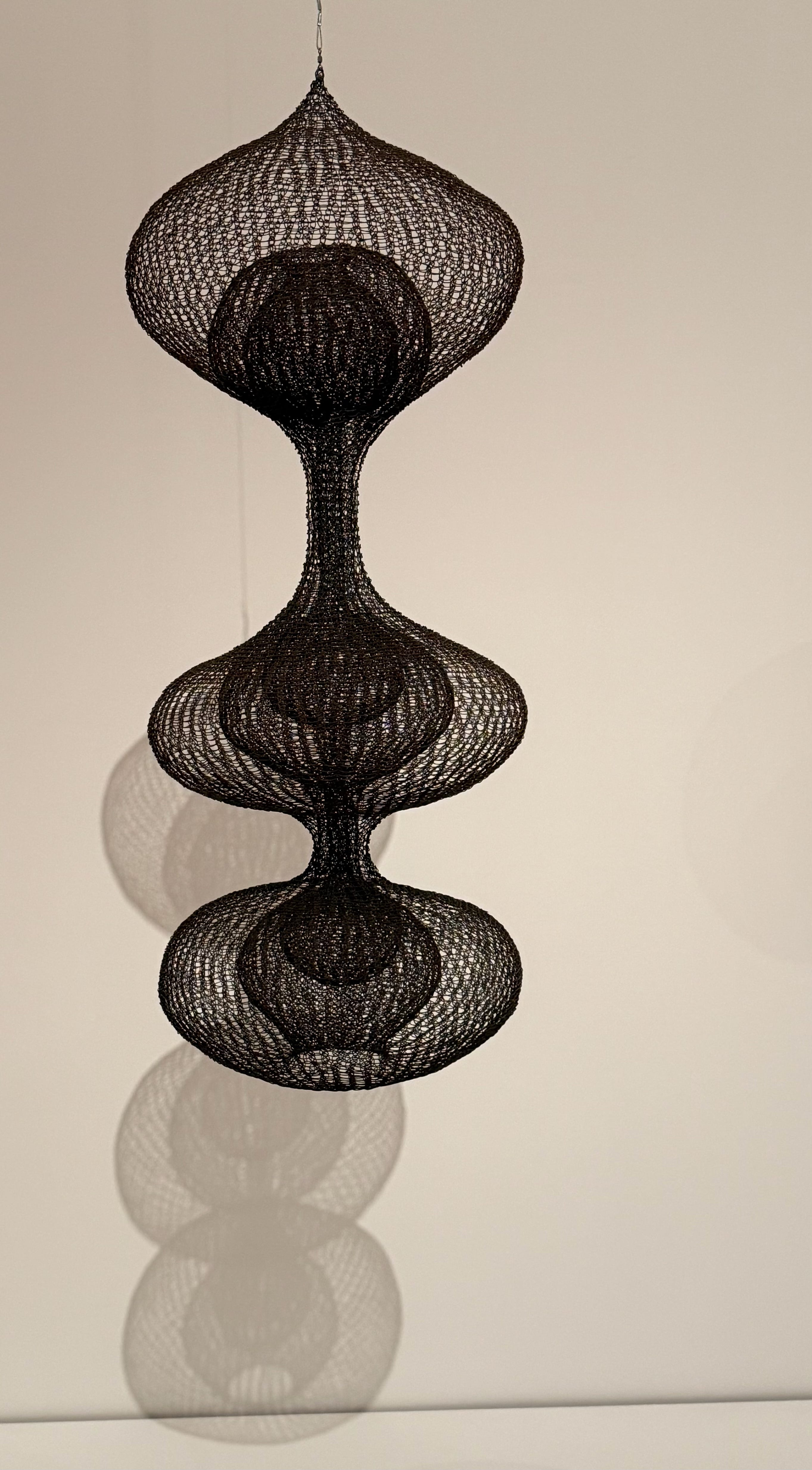 ASAWA’S WIRE: (informative, warm, repeating) The forms are transparent in some ways you can see through and inside of. Looking into the middle “lobe” or “sphere” feels like looking back in time at old starlight, at the big bang, at a singular event.